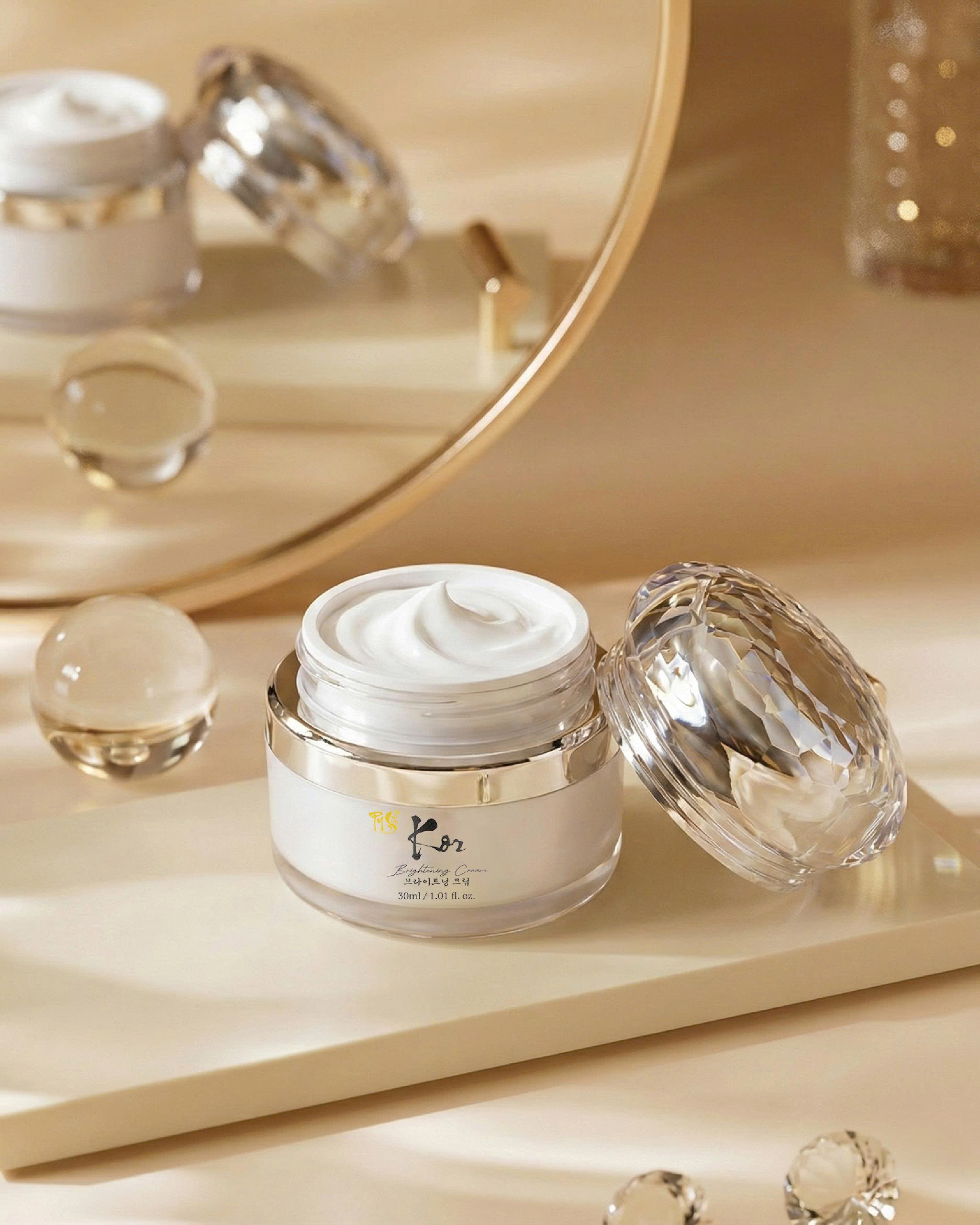 KOR Brightening cream — 단순한 크림이 아닌, 피부를 보호하고 영양을 공급하며 빛을 되살리는 신비로운 바이오 실드로, 당신의 피부가 언제나 건강하고 환하게 빛나도록 함께합니다.